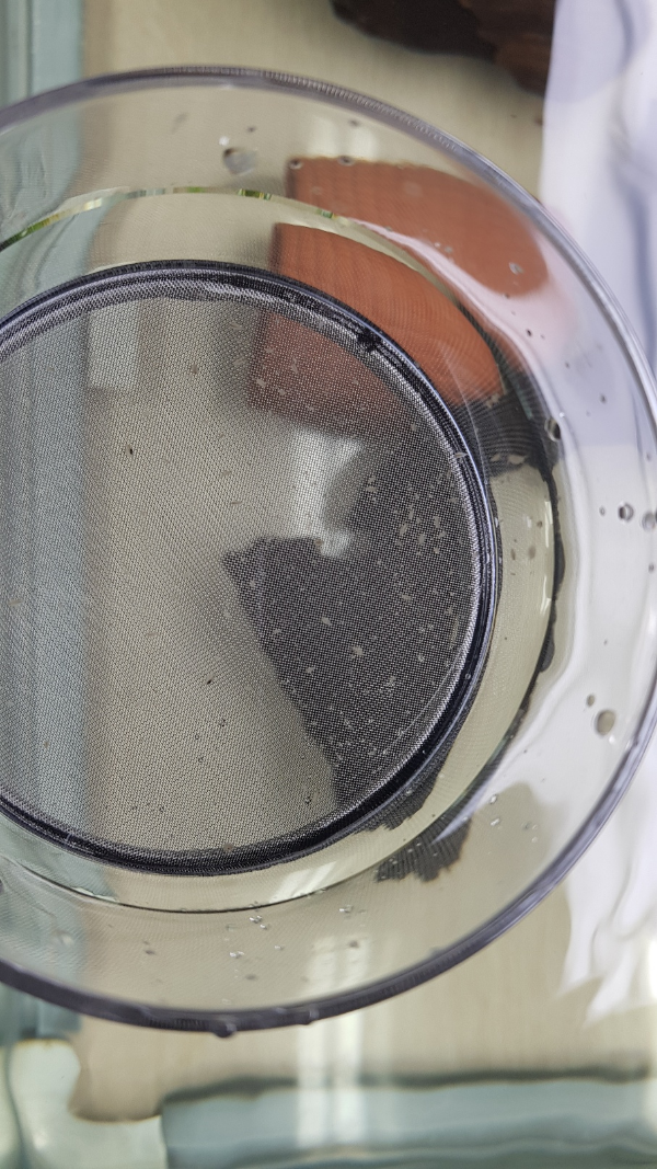 사진상에 표현이 되나 모르겠는데... 거름망 위에 하얀 먼지 같은 게 다 물벼룩 걸러서 넣은 겁니다 ㅋㅋㅋ500~1000마리 정도 되는 거 샀더니 스포이드 몇 번 뿜뿜하면 물벼룩이 수북해지네요 ㅋㅋㅋ