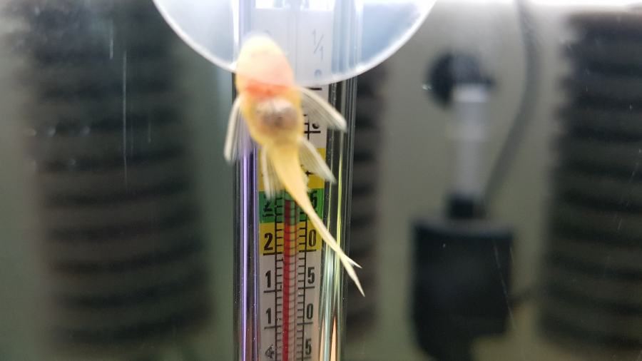 사실 이부분이 가장 의심스럽습니다. 2자 중폭 어항은 안시 유어 4마리에게는 상당히 넓은 영역이지만 유목이 2개밖에 없는 상황에서 자리싸움에 지속적으로 밀리다보니 먹이를 제대로 섭식하지 못했을 확률도 어느정도 있는것 같습니다.