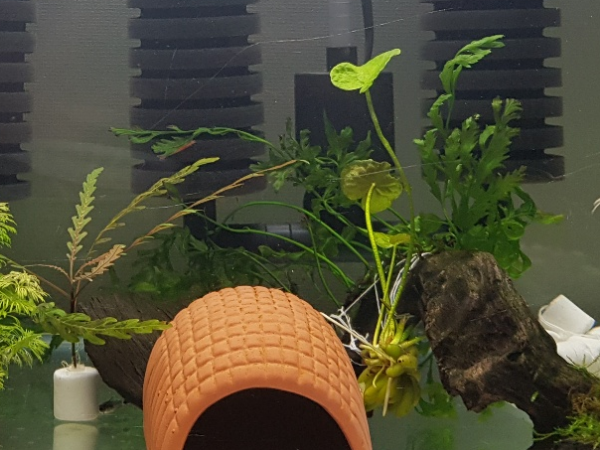 가장 즐거움을 준 수초는 바나나 플랜트였습니다. 크기는 거의 그대로지만 확실한 변화를 보여주고 있거든요! 물에 가라앉는 녀석 한 벌브, 자꾸 물 위로 뜨는 녀석 한 볼브해서 총두 개가 자라고 있습니다.