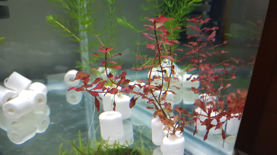 하이그로필라 피나디피다는 크기는 큰 차이 없지만 새로운 잎들이 나기 시작했고, 루드위지아 슈퍼레드는 길이도 좀 길쭘해지고 줄기 중간에서 뿌리를 내리기 시작했습니다. 둘 다 느리지만 성장을 보여주는 거 보면 적응을 하긴 한 것 같습니다. 많이 자라면 촉을 좀 나눠서 숫자를 늘려야겠습니다.