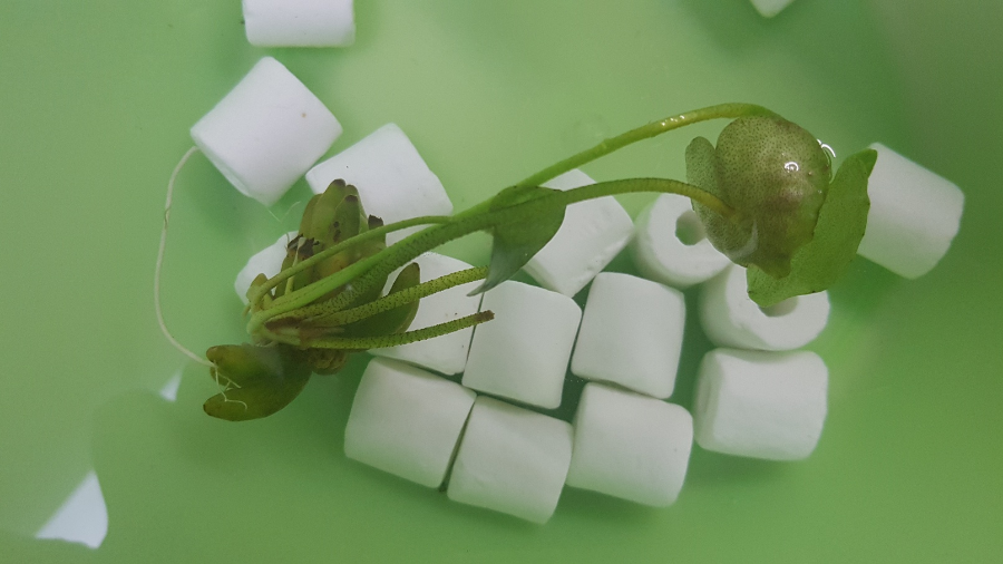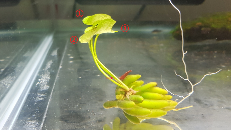 물 위로 뜨는 녀석도 새로 잎을 올리고 뿌리를 굵게 새로 내리는 중입니다. 비교 사진이 없어 정확한 확인은 좀 힘들 것 같습니다. 그래도 처음에 입수할 때는 없었던 뿌리와 잎이 새로 돋아난 건 확실한 것 같습니다 ㅎㅎ