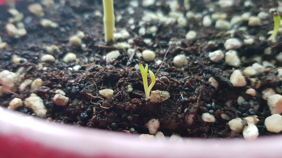 약 일주일만에 싹이 올라오기 시작했습니다. 따로 화분을 마련해서 심은 곳엔 아무것도 안 나오고 바질옆에 찔러둔 씨앗만 새싹이 돋아 올라오네요. 싹만 보고 용과인지 아닌지 어떻게 아느냐고 하실 수도 있는데 잘 보면 끝에 씨앗 껍데기가 매달려있습니다 ㅋㅋㅋ