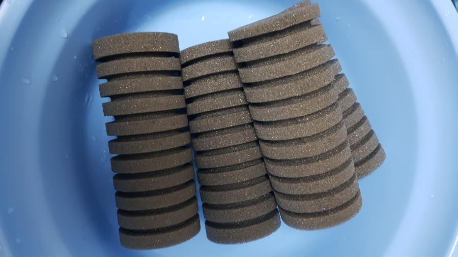 스펀지는 따로 가져가서 물에 담가뒀다가 손으로 꾹꾹 눌러서 물세탁을 했습니다. 물로 씻어도 그 특유의 스펀지냄새? 기름냄새? 그런 게 안 빠지네요;;; 심지어 만졌던 손에도 냄새가 스며서 손에서도 냄새가 납니다 ㄷㄷ 개인적으로 생물이 있는 어항에 바로 투입하기에는 무리가 좀 있어 보이는 냄새였습니다. 세척을 하시거나 장시간 물에서 좀 돌린 뒤에 투입하시는 편이 좋아 보였습니다.