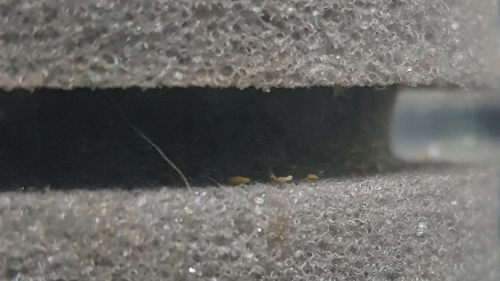 일단 기존에 히드라가 우글거리던 좌측 사진과 비교해서 우측사진에 스펀지 여과기가 확실히 깨끗해졌습니다!!! 투약후에 하루정도는 히드라가 있던자리에 촉수만 사라진 몸통이 남아 흐느적 거린다고 하던데 그런게 안보이네요 ㅋㅋ