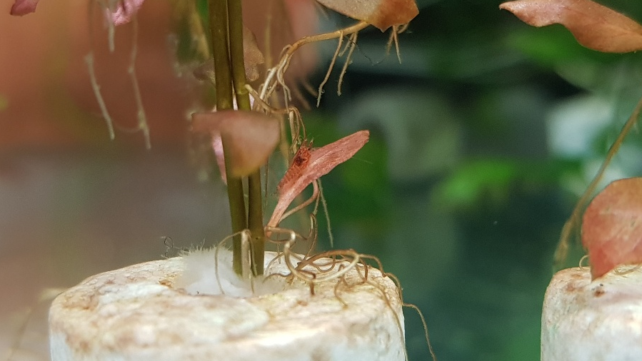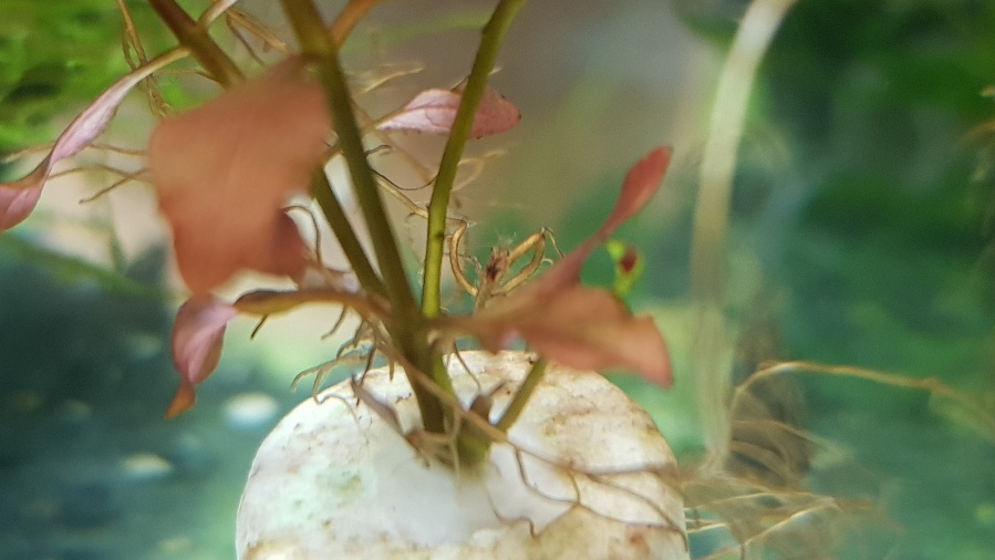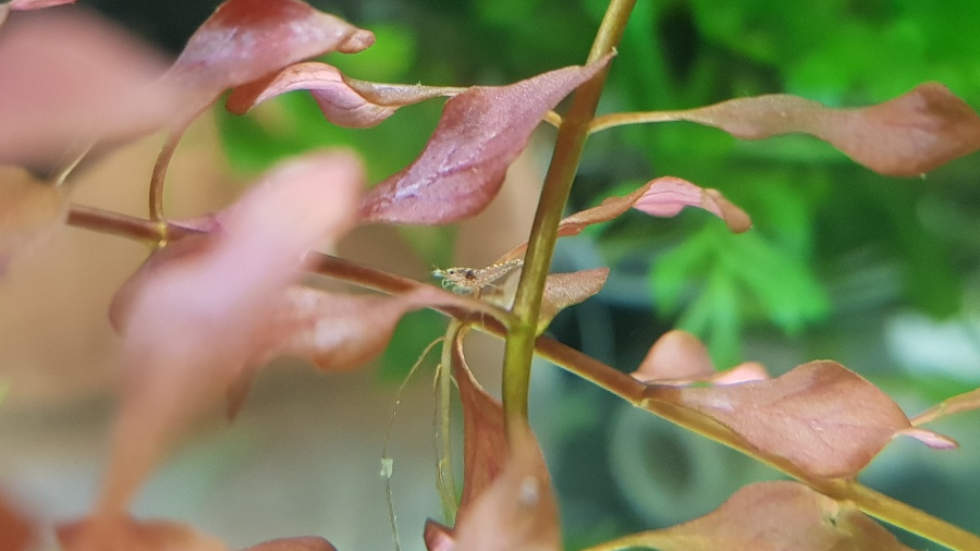 루드위지아 슈퍼레드 잎이 약 1cm정도인걸 생각하면 정말 작은 치새우가 보입니다. 방란한지 얼마 안 된 녀석이 아닐까 생각해 봅니다.