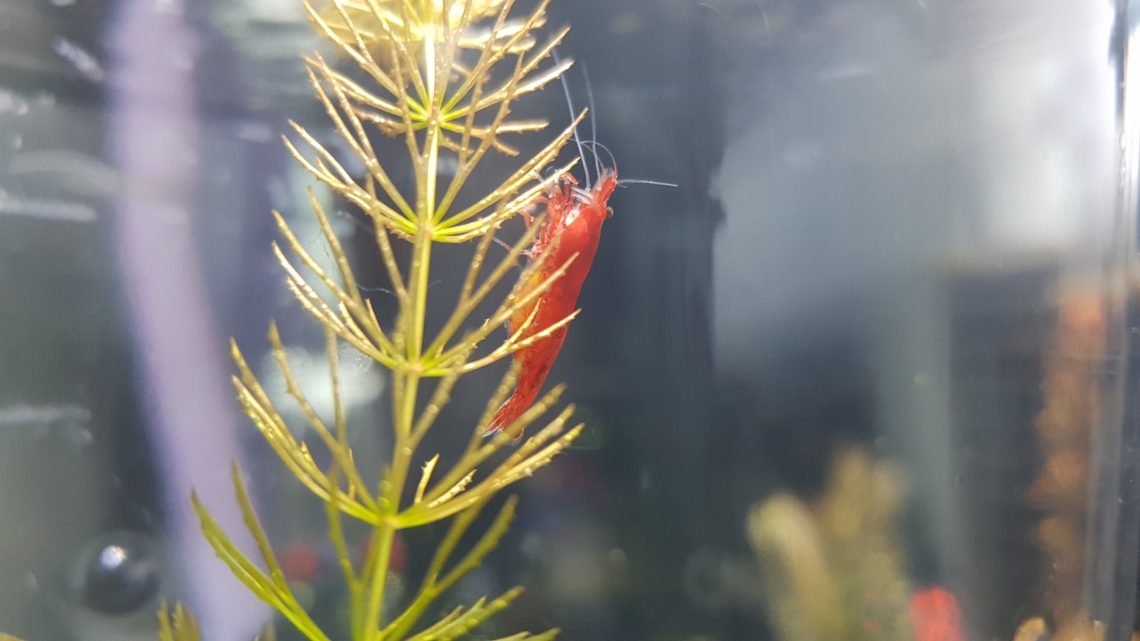 요건 크기가 제법 커졌습니다! 색도 붉게 올라와 있어서 누가 봐도 체리새우네요!! 제법 모양새를 갖춰서 '나 체리새우야!' 하는 것 같습니다 ㅋㅋㅋ