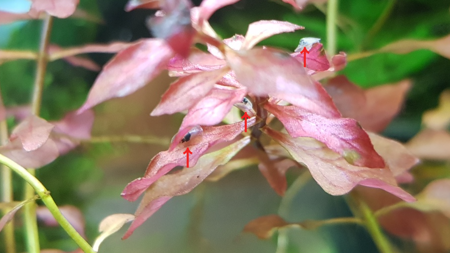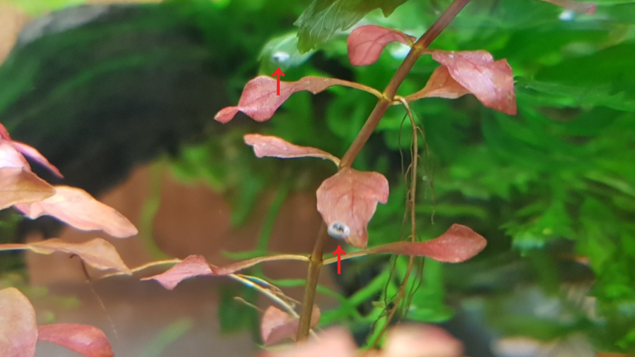 수초에 여기저기 잔뜩 붙어있습니다;;; 보면 맨질맨질한 면에는 여기저기 붙어있습니다. 넓적한 입뿐만 아니라 붕어마름이나 암브리아 줄기같이 맨질한 곳에도 붙어있습니다. 이상하게 스펀지여과기나 모스류에는 거의 안 붙어있습니다. 뭐 이유는 잘 모르겠지만 아무튼 그렇습니다.