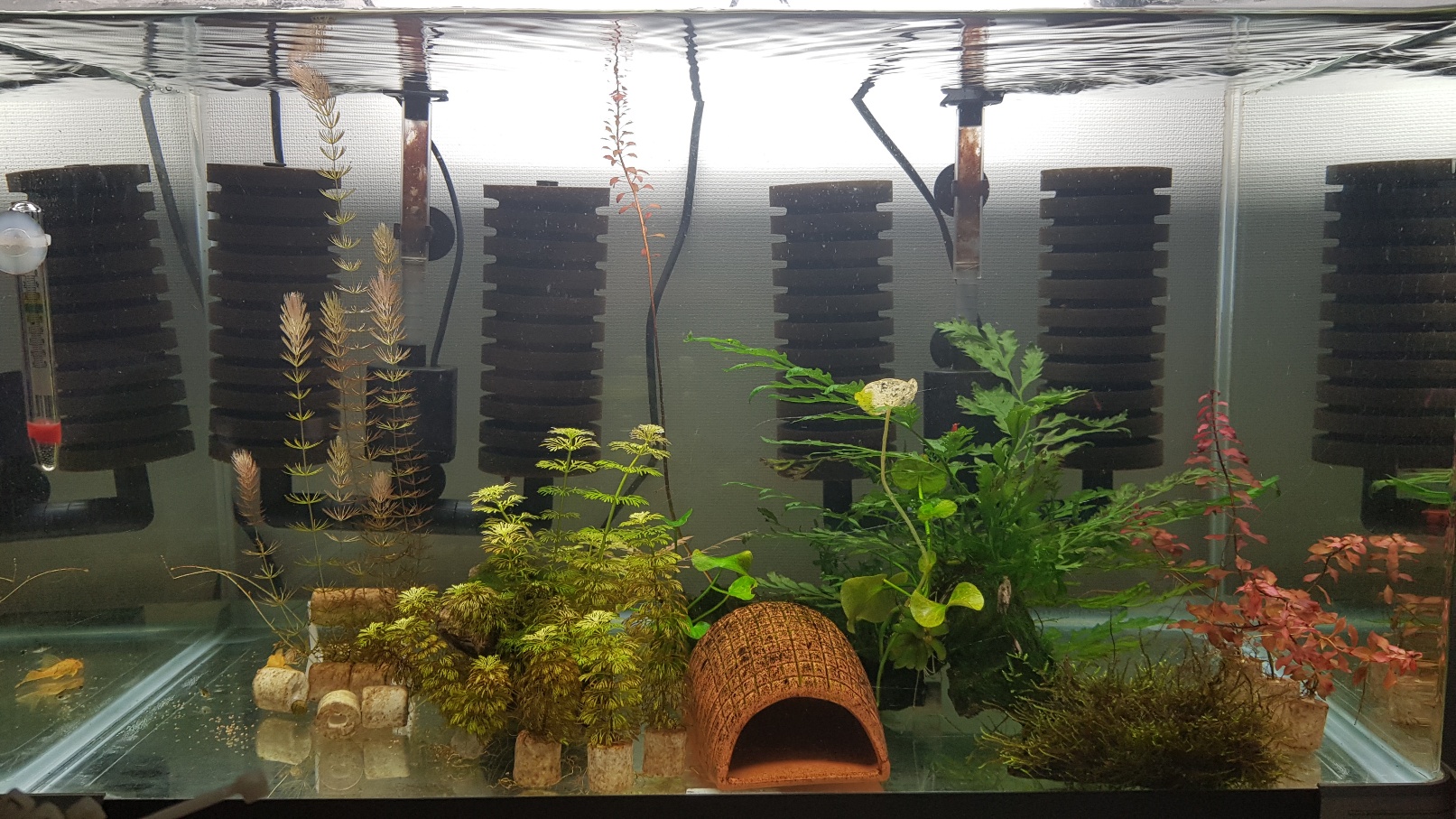 수초는 전반적으로 잘 자라주고 있습니다. 삿갓조개가 너무 창궐해서 걱정이긴한데 젤콤 넣어줬으니 곧 줄어들꺼라 생각합니다.