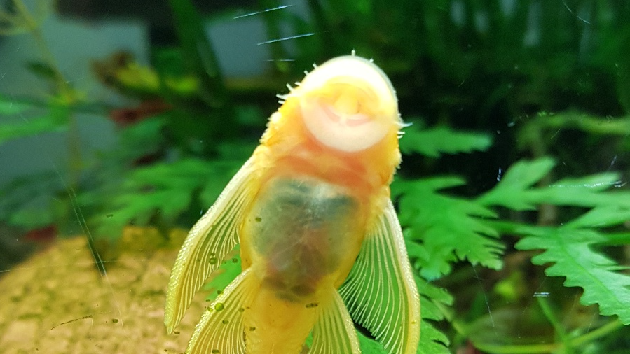 약 9cm 정도로 길이보다 체급이 커지기 시작한지 꽤 되었습니다. 배만 봐서는 거의 암컷 수준으로 뚱뚱이인데 배 쪽에서 봐도 등 쪽에서 봐도 수염이 확실하게 보입니다. 점점 여기저기 수염이 뽈롱뽈롱해지는걸 봐서도 수컷이 확실해 보입니다. Y자로 수염이 갈라지고 콧등까지 수염이 나려면 아직 더 자라야겠네요.