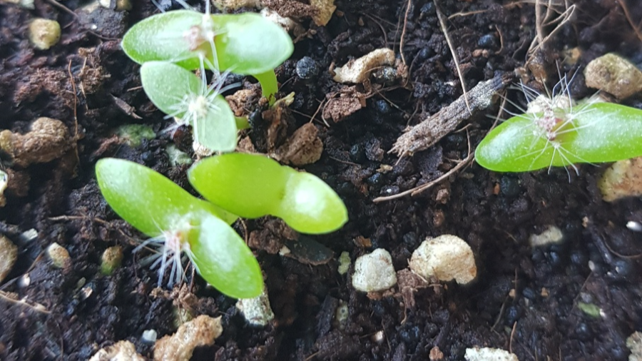 겨우내 그대로 죽지 않고 자라지도 않고 버티던 녀석들이 봄이 되니까 떡잎 사이로 보송보송하게 솜털 같은 게 나더니 제법 선인장 같은게 올라오는 게 보이네요!! 결국엔 온도가 문제였던 것 같습니다. 너무 서늘한 공간에 있다 보니 온도 문제로 성장을 못하고 다 죽었던 것 같습니다. 손바닥 만한 화분에 10개 정도가 보송보송하게 솜털을 올리고 있으니 다자라면 숫자가 꽤 많을 듯하네요;;;