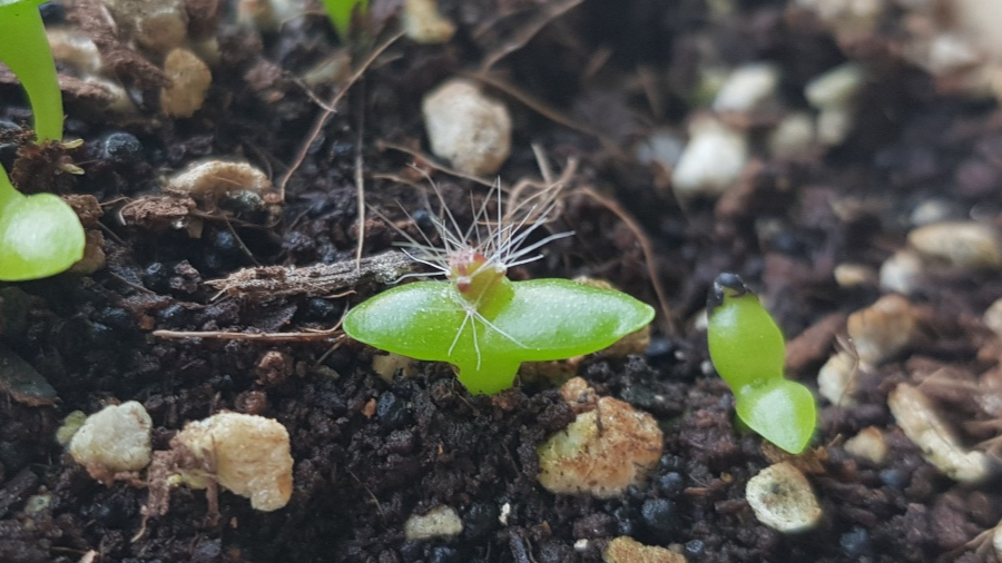 지난 늦가을에 용과씨를 뿌려서 새싹이 나는 것까지는 봤는데요. 발아는 됐는데 그 상태로 성장이 완전 멈춰 있었습니다. 베란다가 10~15도 이하로 내려가지는 않았는데도 그 상태 그대로 있더라고요;;;