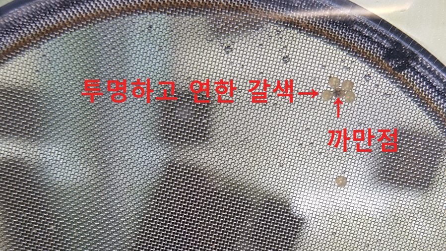 무정란의 경우 알 내부가 흰색으로 보이고, 유정란의 경우 투명한 연한 갈색을 보였습니다. 하루~이틀 지나고 알 속에 까만 점같은게 보이면 확실히 유정란입니다.